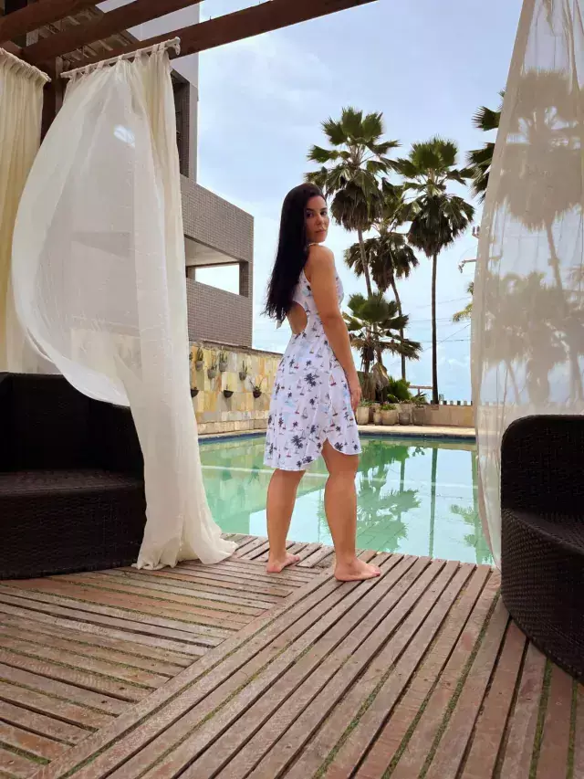 O Maiô Saída é a escolha perfeita para quem busca um look sofisticado e versátil para os dias de sol. Ele pode ser usado de duas formas: com a saia solta para um visual fluido e leve ou amarrada na cintura para um toque mais acinturado e elegante.